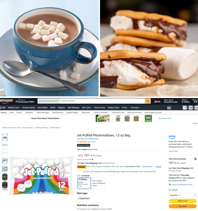 Jet-Puffed 마시멜로우는 전통적인 미니 마시멜로우로, 부드럽고 폭신한 식감이 특징이에요. 핫초코 토핑, 스모어,두쫀쿠 등 다양한 디저트에 활용 가능한 기본 재료랍니다. 영양성분에서 지방이 없고 가벼운 단맛으로 어린이들도 즐기기 좋아요. 봉지에 담겨 있어 신선도를 유지하면서 간편하게 보관할 수 있어요.