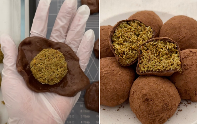 두쫀쿠는 ‘두바이 초콜릿’에서 사용되는 카다이프와 피스타치오 스프레드를 활용해, 마시멜로우로 감싸 쫀득한 식감을 더한 한국식으로 재해석된 디저트예요. 작년 큰 인기를 끌었던 두바이 초콜릿 열풍에서 파생된 디저트로, 2026년 초를 기점으로 SNS와 디저트 커뮤니티를 중심으로 빠르게 확산되며 ‘두바이 쫀득 쿠키’, 줄여서 두쫀쿠라는 이름으로 불리기 시작했죠.