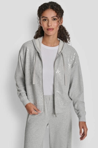 SEQUIN ZIP FRONT HOODIE