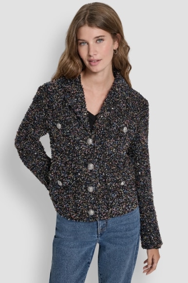 LONG SLEEVE CARDIGAN W RHINESTONE BUTTONS